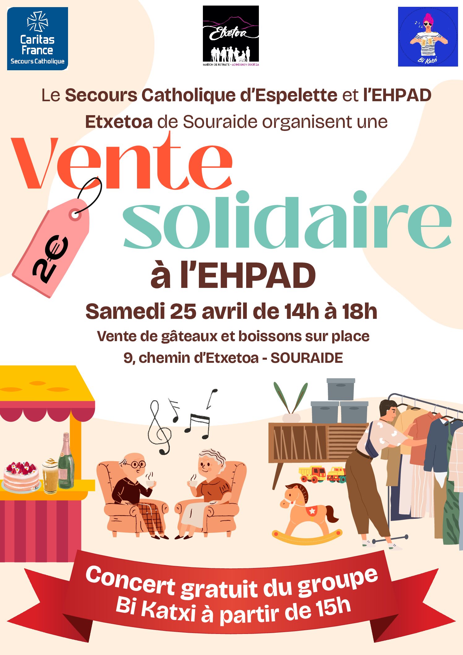 Affiche vente solidaire 25 avril 2026 ETXETOA